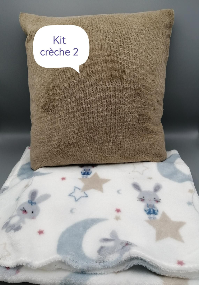 Coussin (dehoussable) + petite couverture polaire. Ideal crèche et maternelle