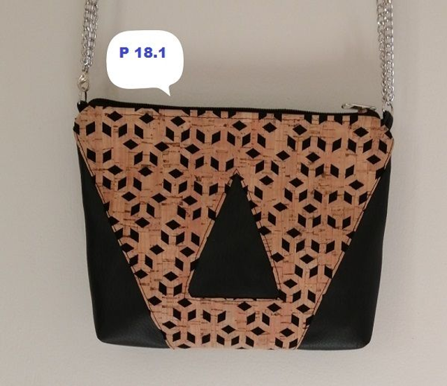 pochette simili et liège, 22*16*3, doublée, zippée, bandoulière chainette