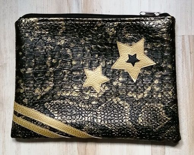 pochette simili cuir, 22*16, doublée, zippée, bandoulière chainette