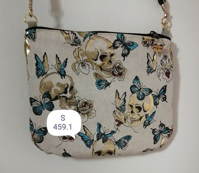 Sac textile "tête de mort", doublé, zippé, poche extérieure zippé, bandoulière réglable et amovible