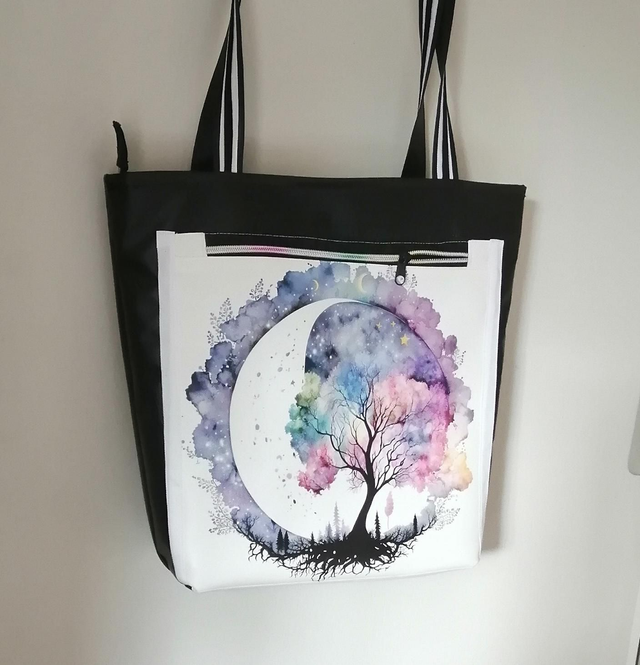 Cabas simili 40x35x12, porté epaule, grande poche extérieure zippée, doublé, zippé, poche intérieure zippée avec mousqueton, fond de sac