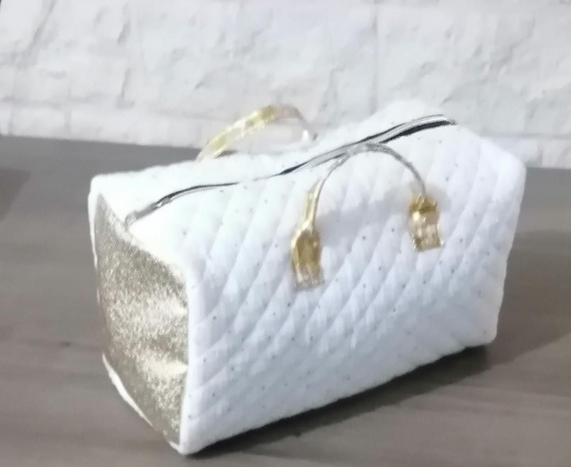 Trousse, toile matelassée et simili, doublée coton, 30x18x13